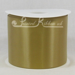 Beautiful 100mm (approx. 4 inch) wide Single faced Satin woven ribbon on a 50 metre (54.68 yd) roll / reel. Colour GOLD.