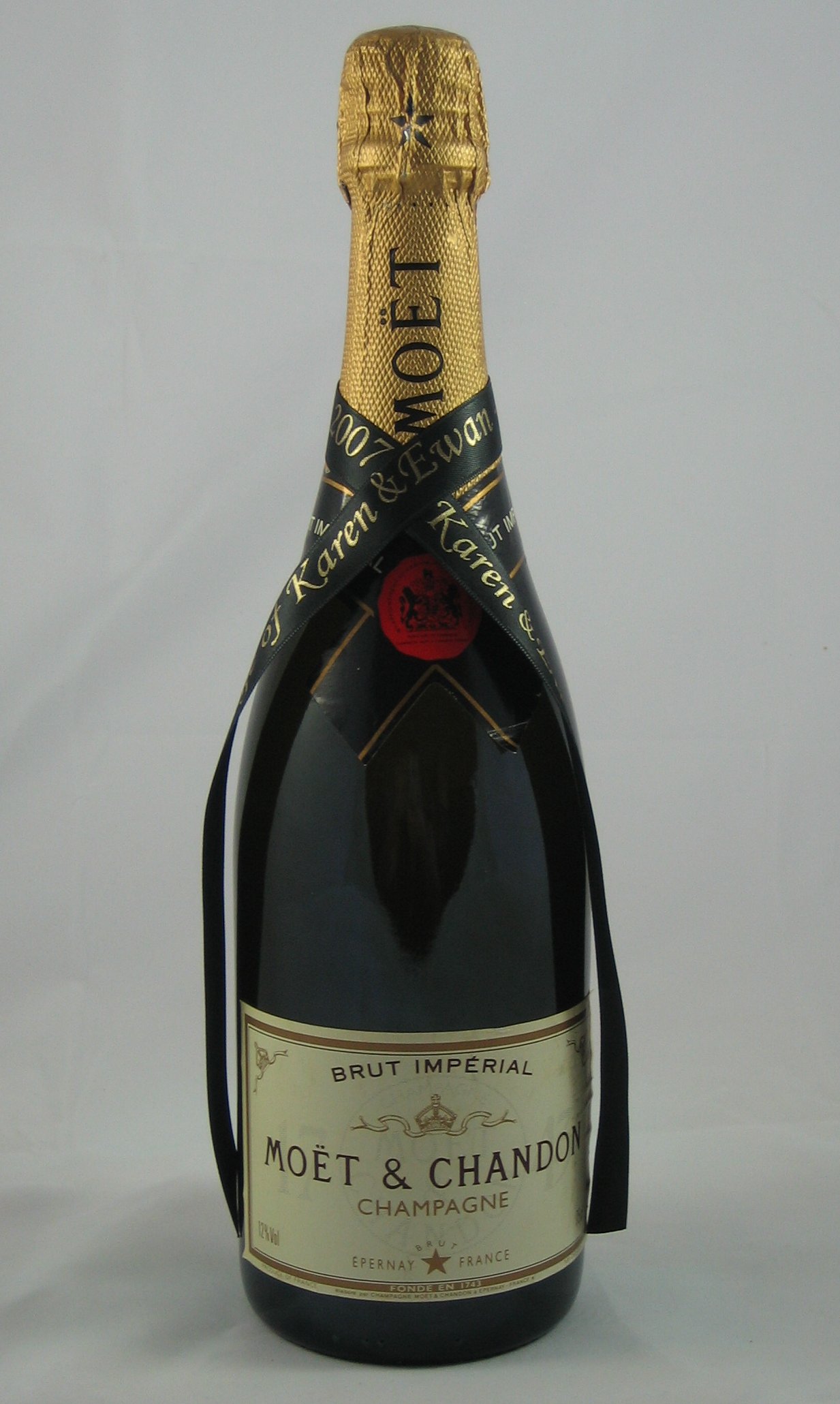 Ideal to put around the neck of champage/wine bottles at the reception or as a thank you message for a bottle gift to anyone in the bridal party. Priced each - only £1.75 FOR EVERY 5 IDENTICAL MESSAGE NECK TIES YOU BUY YOU GET ONE FREE. Cart will show number ordered. Simply order 5 or over as the Quantity and we will send the extra/s as an addition with your order. Messages with differing recipient names do not qualify (as each item needs to be ordered separately with the individual message details). Beautiful BLACK 15mm double faced satin ribbon approx 55cm in length in shiny metallic gold print with wedding rings motif at each end of the ribbon. Message can be either: " [rings motif] Celebrating the marriage of (Name & Name) (Wedding Date) [rings motif]" or for a thank you message: " [rings motif] Thank you (recipient Name) for all your help and support love (name & name) [rings motif]" Ribbon is supplied with double sided tape in the correct position to wrap around and sit at the base of the neck of a standard champagne/wine bottle.