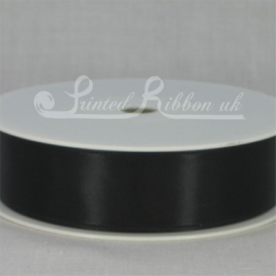 Beautiful 25mm (approx. 1 inch) wide Double faced Satin woven ribbon on a 25 metre roll/reel. Colour BLACK.