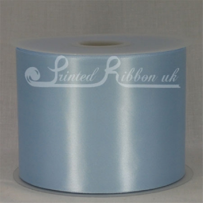 Beautiful 100mm (approx. 4 inch) wide Single faced Satin woven ribbon on a 50 metre (54.68 yd) roll / reel. Colour PALE BLUE.