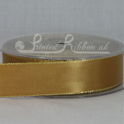 Beautiful 25mm (approx. 1 inch) wide Gold Edged, Double faced Satin woven ribbon on a 20 metre (21.8 yd) roll/reel. Ribbon Colour GOLD.