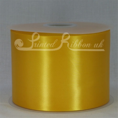 Beautiful 100mm (approx. 4 inch) wide Single faced Satin woven ribbon on a 50 metre (54.68 yd) roll / reel. Colour YELLOW.