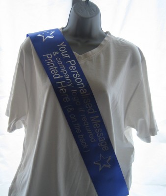 Design your own beautiful custom made, ROYAL BLUE personalised printed sash suitable for corporate events, promotional events, hen nights, stag nights, beauty pageants, sporting events, parties, grand opening or launch events, sashes for corporate advertising, sashes for exhibitions, sashes for award evenings, sashes to promote / celebrate special occasions e.g. Birthdays and sashes for awareness or fundraising events etc.