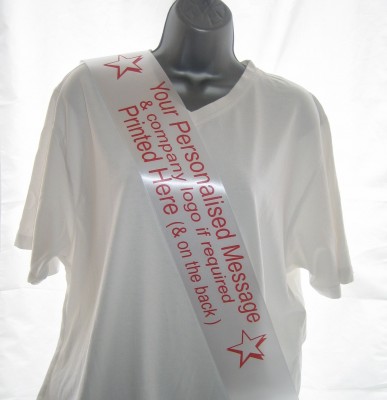 Priced each, the price includes a printed message and company logo or motif printed on both the front side and even the back side of the sash if required. If you want a different message on the front to the back this is not a problem. Please note that text size may need to be reduced or printed on two lines if you have a long message.