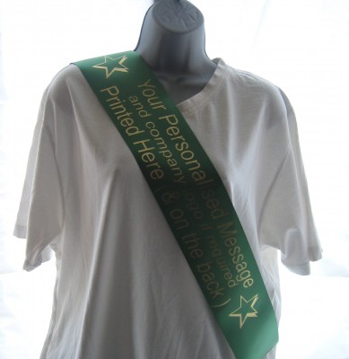 Design your own beautiful custom made,EMERALD GREEN personalised printed sash suitable for corporate events, promotional events, hen nights, stag nights, beauty pageants, sporting events, parties, grand opening or launch events, sashes for corporate advertising, sashes for exhibitions, sashes for award evenings, sashes to promote / celebrate special occasions e.g. Birthdays and sashes for awareness or fundraising events etc.