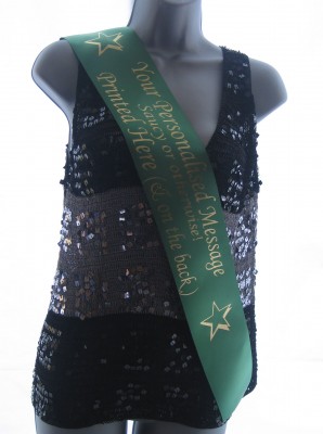 Personalised, Custom Printed GREEN Satin Sash for Hen Nights / Party- 100mm wide (SASHHENGREEN)