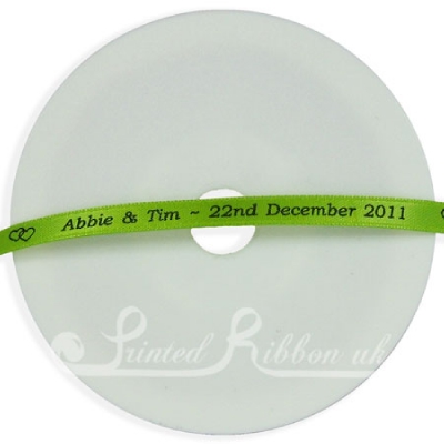 7mm custom printed ribbon is ideal for wedding favours, Civil ceremonies, Christenings, Birthdays, Wedding Anniversaries, gifts for corporate clients etc. Our personalised printed ribbon looks lovely tied round favour boxes, party boxes, jewellery boxes or organza bags to give that personal touch for your guests or clients. As the ribbon is double faced satin, the reverse side is the same quality as the printed side.Unlike other ribbon printers, no set up / origination or artwork charges apply.