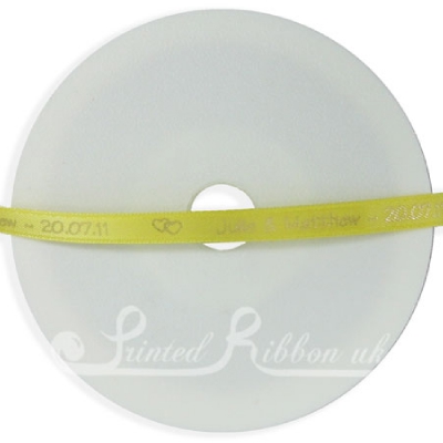 This is to purchase a roll of approx 25m of YELLOW 7mm wide double faced satin ribbon, printed to your requirements.