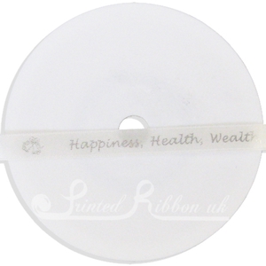 We make the space between prints approx 8mm - 15mm for best print effect. If you have a specific gap or printing requirement between prints just let us know. To order by telephone call +44 (0)1530 229 234 with details for your individual bespoke printed ribbon. All major credit and debit cards are accepted. Our 10mm printed ribbon is available in a variety of colours - white, silver, ivory, lilac, light purple, purple, pale pink, hot pink, red, bronze, burgundy, royal blue, navy blue, light blue, light green, yellow, gold, orange, green, brown and black are just some of the 40+ colours we stock in this ribbon width Need your bespoke, personalised printed ribbon in a hurry? Contact us as we normally have the ribbon in stock waiting to have your individual message printed on to it. If you require the personalised ribbon to be dispatched in less than a week please select Royal Mail Special Delivery option at the checkout (for UK mainland) if ordering online. For a small extra charge, we can cut and seal the printed ribbon into specified lengths to save you time and give a professional finish. To order personalised ribbon with this service, please contact us +44 (0)1530 229 234. After the order is placed we prepare a print confirmation document incorporating a photo of the printed ribbon which is emailed for your review and approval before printing so you can be confident in the ribbon you receive.