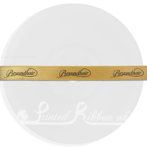 A 25m roll (approx) of GOLD 10mm wide high quality double faced satin bespoke personalised ribbon. 10mm custom printed ribbon is ideal for wedding favours, Civil ceremonies, Christenings and Naming Days, Birthdays, Wedding Anniversaries, gifts for corporate clients or to add branding to your products etc. Our personalised ribbon looks lovely tied round favour boxes, party boxes, photo albums, invitations, jewellery boxes or organza bags to give that personal touch for your guests or clients. As the ribbon is woven edge double faced satin, the reverse side is the same quality as the printed side. Unlike other ribbon printers, no set up / origination or artwork charges apply. There is no maximum message print length, print as much (or little) as you like onto the ribbon. A motif, graphic or company logo, if required, is included in the price. If you require a larger print run than 25m for a function, event or custom printed ribbon for a business, please contact us for an individual competitive quotation. The more you buy the more you save per printed metre! Designing your own personalised ribbon - simply advise the message you want to be printed on the satin ribbon, the printing colour for text and your font choice. Most popular fonts are: