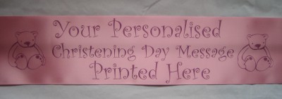 > Christening, Baptism or Naming Day Personalised Printed Satin Ribbon Banners