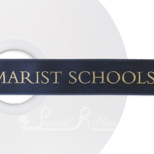 A 50m roll (approx) of NAVY 25mm wide high quality double faced satin bespoke personalised ribbon.