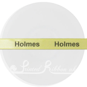 25m roll of 10mm YELLOW double faced satin personalised printed wedding ribbon for your wedding favours to make your wedding day extra special with this bespoke ribbon. 10mm printed ribbon is the ideal width to wrap round the traditional 5cm square favour boxes and small organza bags or clear cellophane bags. Brides and Grooms or bridal couples can print their first names and the wedding date on the wedding ribbon. Alternatively, the printed wedding message could be “Mr & Mrs” followed by the surname and the wedding date. We can print any message and if you wish you can also print a motif from the selection below. Unlike other ribbon printers there is no set up or origination charge, no charge per letter or motif – everything is included in the price. Design your own personalised wedding ribbon easily, simply state the wedding message to be printed on to the ribbon, printing colour for text, your font choice and any motif. The maximum print height on 10mm ribbon is 7mm so we offer only the fonts and motifs that print most effectively on this narrow ribbon from our extensive printing experience. Fonts available are: Motifs available are:  |  |  |  |  |  | | #a. Outline Heart | #b. Solid Heart | #c. Entwined Hearts | #d. Wedding Rings | #e. Wedding Bells | #f. Swirly Heart |  |  |  |  |  |  | | #g. Champagne Glasses | #i. Outline Star | #j. Solid Star | #k. Butterfly | #l. Fleur de Lys | #m. Flower |  | YOUR LOGO | | #o. Diamond | #4. My own logo - email logo | The unprinted reverse side of this luxury ribbon is the same quality as the printed side which makes tying bows easy. Once the ribbon is ordered we prepare a print confirmation document incorporating a photo of your printed ribbon for you to review and approve before printing. If you have a specific printing requirement or spacing between prints just let us know. Orders can be placed here online or Contact us with details of your individual bespoke wedding ribbon and order over the telephone 01530 229 234 (8.00am to 8.00pm) as we accept payment by most major credit and debit cards. For a small extra charge we also offer a cut and heat sealing service to cut the printed wedding ribbon into specified lengths to save you time and give a professional finish. Contact us to order the printed ribbon and cutting service. If you require more than 25m printed ribbon see 50m personalised wedding ribbon section or for even more printed wedding ribbon contact us for a competitive quotation. The more you buy the more you save per metre! Need personalised wedding ribbon in a hurry? Contact us as we have ribbon in stock to print your custom wedding message on to it. However, if you require the ribbon in less than a week please choose Royal Mail Special Delivery for the P&P option when ordering online.