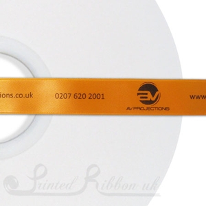 A 50m roll (approx) of ORANGE 15mm wide high quality double faced satin bespoke personalised ribbon. 15mm custom printed ribbon is ideal for wedding favours, Civil ceremonies, Christenings and Naming Days, Birthdays, Wedding Anniversaries, gifts for corporate clients or to add branding to your products etc. Our personalised ribbon looks lovely tied round favour boxes, party boxes, photo albums, invitations, jewellery boxes or organza bags to give that personal touch for your guests or clients. As the ribbon is woven edge double faced satin, the reverse side is the same quality as the printed side. Unlike other ribbon printers, no set up / origination or artwork charges apply. There is no maximum message print length, print as much (or little) as you like onto the ribbon. A motif, graphic or company logo, if required, is included in the price. If you require a larger print run than 50m for a function, event or custom printed ribbon for a business, please contact us for an individual competitive quotation. The more you buy the more you save per printed metre! Designing your own personalised ribbon - simply advise the message you want to be printed on the satin ribbon, the printing colour for text and your font choice. Most popular fonts are: If you have a particular company font or wedding font to be printed contact us with the details. You can choose one of our popular motifs below if you have something specific in mind let us know as we have an extensive graphics library. To print a company logo on the ribbon email us separately at info@printedribbonuk.co.uk a vector graphic or high resolution bitmap graphic i.e ai, eps, pdf, jpg, png, gif or tif file and, subject to it being suitable for printing, we will print this onto the ribbon for no extra charge. Most popular motif choices:  |  |  |  |  |  | | #a. Outline Heart | #b. Solid Heart | #c. Entwined Hearts | #d. Wedding Rings | #e. Wedding Bells | #f. Swirly Heart |  |  |  |  |  |  | | #g. Champagne Glasses | #h. Cocktail Glass | #i. Outline Star | #j. Solid Star | #k. Butterfly | #l. Fleur de Lys |  |  |  |  |  |  | | #m. Flower | #n. Flower with Heart | #o. Diamond | #p. Celtic Knot | #q. Tiara | #r. Crown |  |  |  |  |  |  | | #s. Football | #t. Musical Note | #u. Anchor | #v. Happy Skull and Cross Bones | #w. Balloons | #x. Birthday Age - state age eg #x18 |  |  |  |  |  | YOUR LOGO | | #y. Present | #z. Birthday Cupcake | #1. Holy Cross | #2. Teddy Bear | #3. Paw Print | #4. My own logo - email logo |
