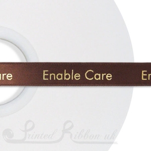 A 50m roll (approx) of BROWN 15mm wide high quality double faced satin bespoke personalised ribbon. 15mm custom printed ribbon is ideal for wedding favours, Civil ceremonies, Christenings and Naming Days, Birthdays, Wedding Anniversaries, gifts for corporate clients or to add branding to your products etc. Our personalised ribbon looks lovely tied round favour boxes, party boxes, photo albums, invitations, jewellery boxes or organza bags to give that personal touch for your guests or clients. As the ribbon is woven edge double faced satin, the reverse side is the same quality as the printed side. Unlike other ribbon printers, no set up / origination or artwork charges apply. There is no maximum message print length, print as much (or little) as you like onto the ribbon. A motif, graphic or company logo, if required, is included in the price. If you require a larger print run than 50m for a function, event or custom printed ribbon for a business, please contact us for an individual competitive quotation. The more you buy the more you save per printed metre! Designing your own personalised ribbon - simply advise the message you want to be printed on the satin ribbon, the printing colour for text and your font choice. Most popular fonts are: If you have a particular company font or wedding font to be printed contact us with the details. You can choose one of our popular motifs below if you have something specific in mind let us know as we have an extensive graphics library. To print a company logo on the ribbon email us separately at info@printedribbonuk.co.uk a vector graphic or high resolution bitmap graphic i.e ai, eps, pdf, jpg, png, gif or tif file and, subject to it being suitable for printing, we will print this onto the ribbon for no extra charge. Most popular motif choices:  |  |  |  |  |  | | #a. Outline Heart | #b. Solid Heart | #c. Entwined Hearts | #d. Wedding Rings | #e. Wedding Bells | #f. Swirly Heart |  |  |  |  |  |  | | #g. Champagne Glasses | #h. Cocktail Glass | #i. Outline Star | #j. Solid Star | #k. Butterfly | #l. Fleur de Lys |  |  |  |  |  |  | | #m. Flower | #n. Flower with Heart | #o. Diamond | #p. Celtic Knot | #q. Tiara | #r. Crown |  |  |  |  |  |  | | #s. Football | #t. Musical Note | #u. Anchor | #v. Happy Skull and Cross Bones | #w. Balloons | #x. Birthday Age - state age eg #x18 |  |  |  |  |  | YOUR LOGO | | #y. Present | #z. Birthday Cupcake | #1. Holy Cross | #2. Teddy Bear | #3. Paw Print | #4. My own logo - email logo |