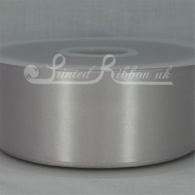 Beautiful 50mm (approx. 2 inch) wide Double faced Satin woven ribbon on a 50 metre (54.5 yd) roll / reel. Colour SILVER.
