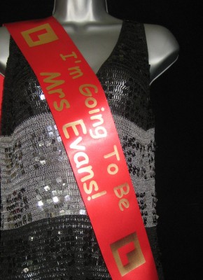 If you need the personalised hen night sashes in a hurry contact us as we have the ribbon in stock waiting to have your message printed on to it.