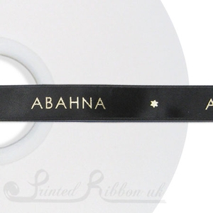 A 50m roll (approx) of BLACK 15mm wide high quality double faced satin bespoke personalised ribbon. 15mm custom printed ribbon is ideal for wedding favours, Civil ceremonies, Christenings and Naming Days, Birthdays, Wedding Anniversaries, gifts for corporate clients or to add branding to your products etc. Our personalised ribbon looks lovely tied round favour boxes, party boxes, photo albums, invitations, jewellery boxes or organza bags to give that personal touch for your guests or clients. As the ribbon is woven edge double faced satin, the reverse side is the same quality as the printed side. Unlike other ribbon printers, no set up / origination or artwork charges apply. There is no maximum message print length, print as much (or little) as you like onto the ribbon. A motif, graphic or company logo, if required, is included in the price. If you require a larger print run than 50m for a function, event or custom printed ribbon for a business, please contact us for an individual competitive quotation. The more you buy the more you save per printed metre! Designing your own personalised ribbon - simply advise the message you want to be printed on the satin ribbon, the printing colour for text and your font choice. Most popular fonts are: If you have a particular company font or wedding font to be printed contact us with the details. You can choose one of our popular motifs below if you have something specific in mind let us know as we have an extensive graphics library. To print a company logo on the ribbon email us separately at info@printedribbonuk.co.uk a vector graphic or high resolution bitmap graphic i.e ai, eps, pdf, jpg, png, gif or tif file and, subject to it being suitable for printing, we will print this onto the ribbon for no extra charge. Most popular motif choices:  |  |  |  |  |  | | #a. Outline Heart | #b. Solid Heart | #c. Entwined Hearts | #d. Wedding Rings | #e. Wedding Bells | #f. Swirly Heart |  |  |  |  |  |  | | #g. Champagne Glasses | #h. Cocktail Glass | #i. Outline Star | #j. Solid Star | #k. Butterfly | #l. Fleur de Lys |  |  |  |  |  |  | | #m. Flower | #n. Flower with Heart | #o. Diamond | #p. Celtic Knot | #q. Tiara | #r. Crown |  |  |  |  |  |  | | #s. Football | #t. Musical Note | #u. Anchor | #v. Happy Skull and Cross Bones | #w. Balloons | #x. Birthday Age - state age eg #x18 |  |  |  |  |  | YOUR LOGO | | #y. Present | #z. Birthday Cupcake | #1. Holy Cross | #2. Teddy Bear | #3. Paw Print | #4. My own logo - email logo |