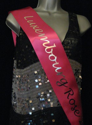 The ribbon we use for the sashes is high quality single faced satin which is far superior to acetate satin that some ribbon printers use.
