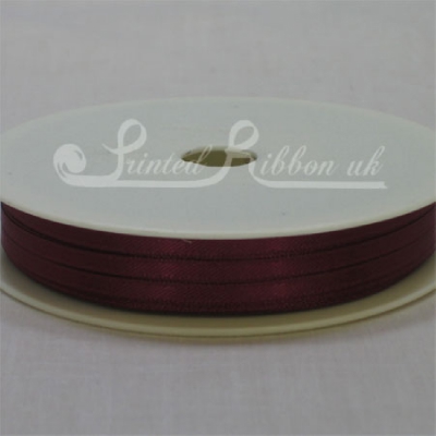 Beautiful 3mm (approx. 1/8 inch) wide Double faced Satin woven ribbon on a 50 metre roll/reel. Colour BURGUNDY.