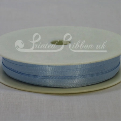 Beautiful 3mm (approx. 1/8 inch) wide Double faced Satin woven ribbon on a 50 metre roll/reel. Colour LIGHT BLUE.