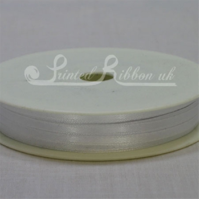 Beautiful 3mm (approx. 1/8 inch) wide Double faced Satin woven ribbon on a 50 metre roll/reel. Colour WHITE.