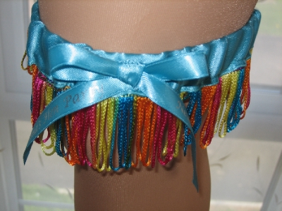 Be the “Talk of the Town” with this spectacular hand made hen night garter. Made with TURQUOISE quality double faced satin and a stunning multi coloured trim. For that final finishing touch that makes it stand out from the rest, a ribbon bow is added which can be personalised on the tails with one of the following A) TAIL 1 BRIDE’S NAME HENS ON TOUR TAIL 2 LOCATION AND DATE B) TAIL 1 BRIDE’S NAME HEN PARTY TAIL 2 LOCATION AND DATE Garters are available in the following sizes but if you require smaller or larger size please contact us. To ascertain size measure around thigh about 3 inches above knee. Sizes Small 11 - 15 inches (28cm - 38cm) Standard 12 - 16 inches (30cm – 41cm) Large 13 - 17 inches (33cm – 43cm) As these garters are made to order so please allow 7 – 10 days for delivery. If you need them urgently phone 07801 06 06 58. This stunning garter can be a keepsake for all your “hens” – a reminder of your wonderful celebratory hen night / hen weekend together..