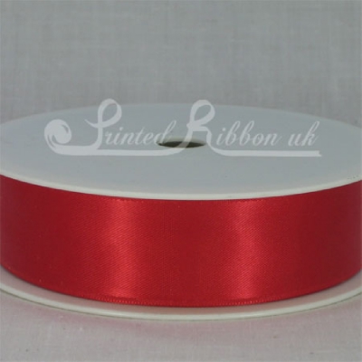 Beautiful 25mm (approx. 1 inch) wide Double faced Satin woven ribbon on a 25 metre roll/reel. Colour BRIGHT RED.