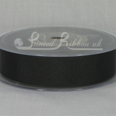 High quality, decorative double faced woven edge 22mm BLACK grosgrain ribbon (aka ribbed ribbon or if misspelt, grossgrain ribbon). Supplied on 20m roll. 22mm ribbon is the nearest width our manufacturer sells to 25mm ribbon. 100% polyester grosgrain ribbon.