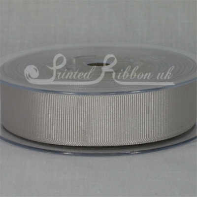 High quality, decorative double faced woven edge 22mm SILVER grosgrain ribbon (aka ribbed ribbon or if misspelt, grossgrain ribbon). Supplied on 20m roll. 22mm ribbon is the nearest width our manufacturer sells to 25mm ribbon. 100% polyester grosgrain ribbon.