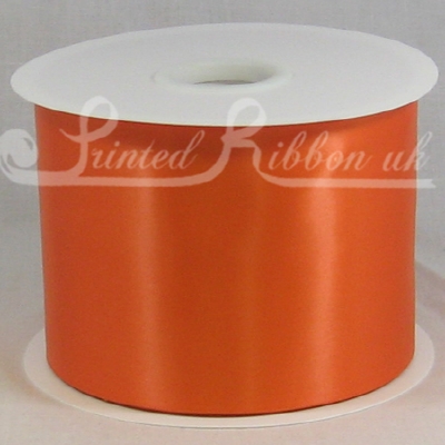 Beautiful 100mm (approx. 4 inch) wide Single faced Satin woven ribbon on a 50 metre (54.68 yd) roll / reel. Colour BRIGHT ORANGE.