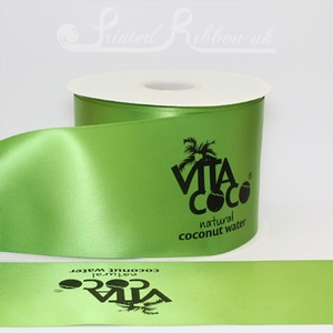 Roll of approx 50m of LIME GREEN 100mm (4 inch) wide high quality single faced personalised printed satin ribbon, printed one side. Create your very own custom printed, luxury personalised printed ribbon.