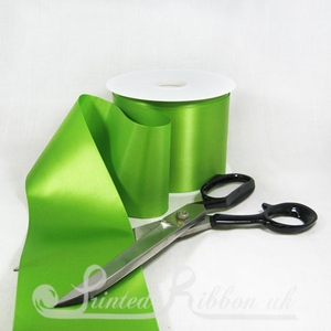 Beautiful 100mm (approx. 4 inch) wide LIME GREEN Single faced Satin woven ribbon, by the metre.