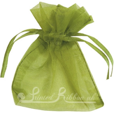 Small OLIVE GREEN organza pouch for wedding favours, Pack of 10 (OPSMLOGRN10)