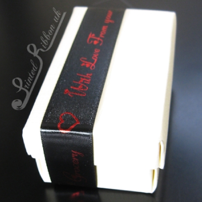 Your Valentine will love any Valentine's gift or gifts wrapped with this beautiful printed ribbon with your own personalised message printed on the ribbon. Personalise the ribbon with a message of your choice and a heart motif or even with your own motif.