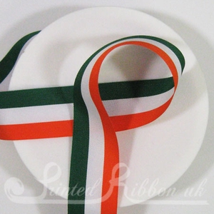 25mm GREEN, WHITE & ORANGE STRIPE 3 colour ribbon, 25m roll (PP25GWOSTR25M) |