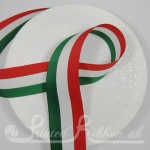 25mm GREEN, WHITE & RED STRIPE Tri colour ribbon, 25m roll (PP25GWRSTR25M) |