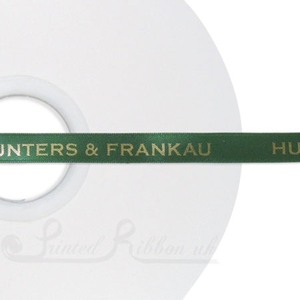 A 50m roll (approx) of GREEN 10mm wide high quality double faced satin bespoke personalised ribbon.