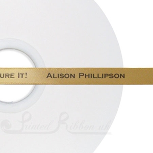 A 50m roll (approx) of GOLD 10mm wide high quality double faced satin bespoke personalised ribbon.
