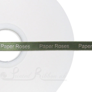 A 50m roll (approx) of OLIVE GREEN / SAGE GREEN 10mm wide high quality double faced satin bespoke personalised ribbon.