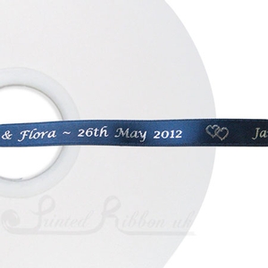 10mm custom printed ribbon is the ideal width to wrap round the standard favour boxes for wedding and civil receptions alike to give that personal touch for your wedding guests. As the ribbon is double faced satin, the reverse side is the same quality as the printed side.