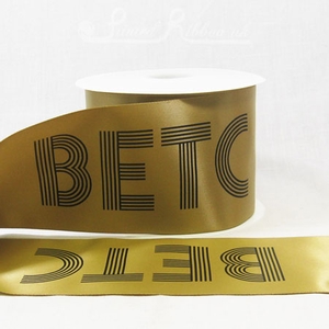 Roll of approx 50m of GOLD 100mm wide high quality single faced personalised printed satin ribbon, printed one side. Create your very own custom printed, luxury personalised printed ribbon.