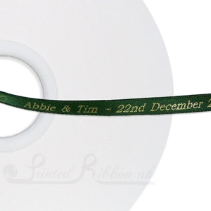 7mm personalised, printed ribbon is ideal for wedding favours, Civil ceremonies, Christenings, Birthdays, Wedding Anniversaries, corporate gifts / give-aways for business clients, scrapbooking etc. Our personalised printed ribbon looks lovely tied round favour boxes, party boxes jewellery boxes or organza bags to give that personal touch for your guests or clients. As the ribbon is double faced satin, the reverse side is the same quality as the printed side.