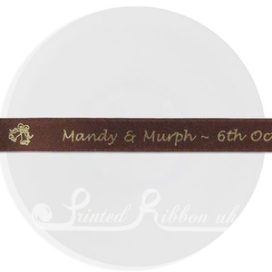 This is to purchase a roll of approx 25m of COFFEE BROWN 15mm wide double faced bespoke printed satin ribbon.