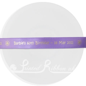 Our 15 mm printed ribbon is available in a variety of colours - white, silver, ivory, lilac, light purple, purple, pale pink, hot pink, red, bronze, burgundy, royal blue, navy blue, light blue, light green, yellow, gold, orange, green, brown and black