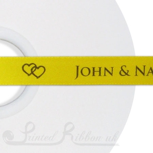 15mm custom printed ribbon is ideal for wedding favours, Civil ceremonies, Christenings, Birthdays, Wedding Anniversaries, gifts for corporate clients etc. Our bespoke printed ribbon looks lovely tied round favour boxes, party boxes, jewellery boxes or organza bags to give that personal touch for your guests or clients. As the ribbon is double faced satin, the reverse side is the same quality as the printed side. Unlike other ribbon printers, no set up / origination or artwork charges apply.