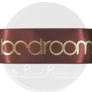 A 25m roll of BROWN 38mm wide high quality double faced satin bespoke personalised ribbon.