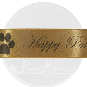 38mm custom printed ribbon is ideal for larger wedding favour presents, Civil ceremonies, Christenings and Naming Days, Birthdays, Wedding Anniversaries, gifts for corporate clients or to add branding to your products etc. Our personalised ribbon looks lovely tied round gift hampers, larger favour boxes, party boxes, photo albums, invitations, jewellery boxes or organza bags to give that personal touch for your guests or clients. As the ribbon is woven edge double faced satin, the reverse side is the same quality as the printed side. Unlike other ribbon printers, no set up / origination or artwork charges apply.