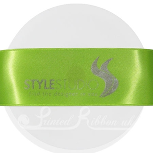 A 25m roll of LIME GREEN 38mm wide high quality double faced satin bespoke personalised ribbon.