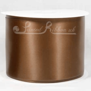 Beautiful 100mm (approx. 4 inch) wide Single faced Satin woven ribbon on a 50 metre (54.68 yd) roll / reel. Colour COFFEE BROWN.